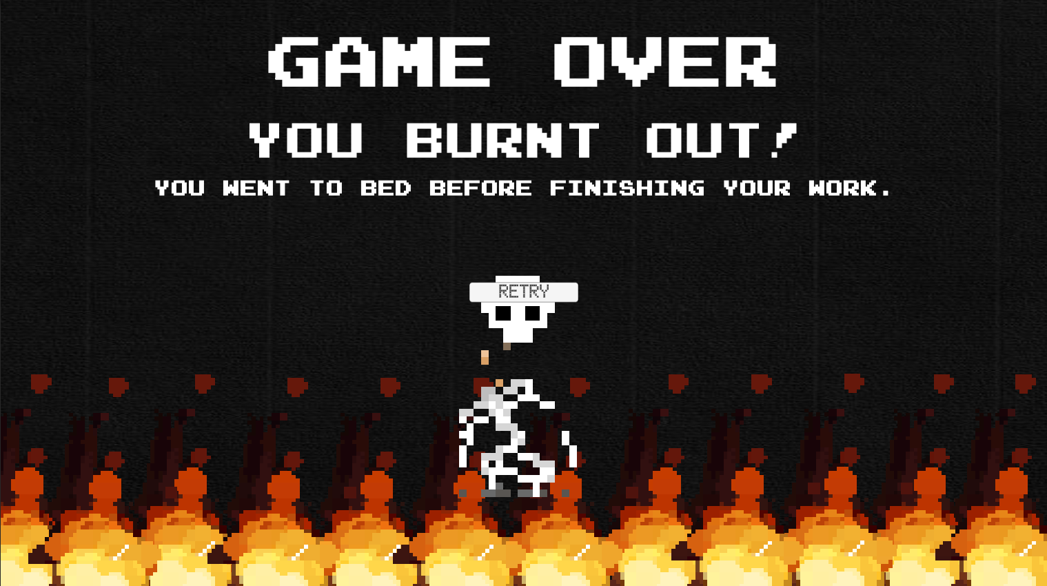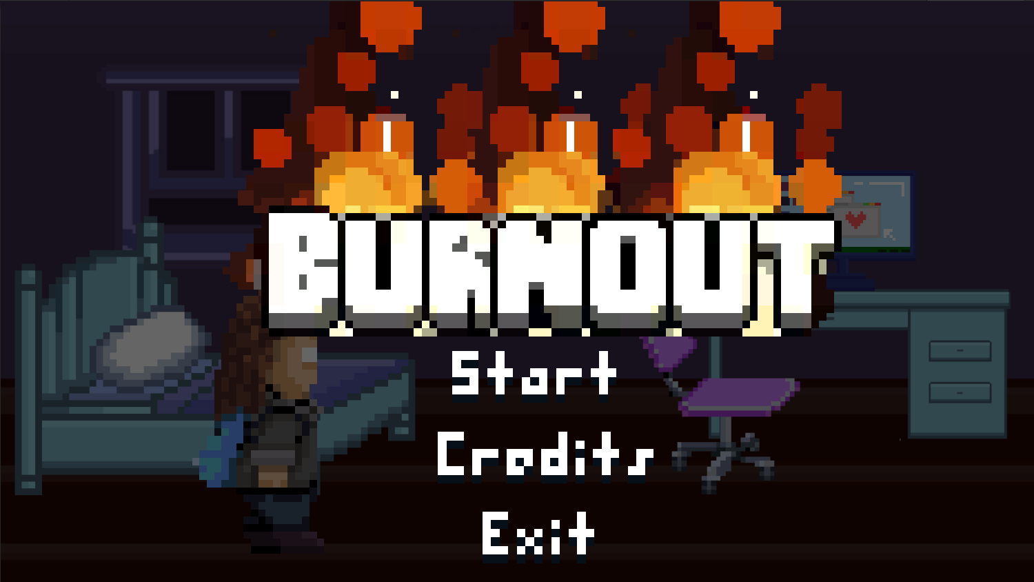 BurnOut is a single-player game for PC platforms to make players engage in a Computer Science character role that keeps juggling the intense demands of college life. Your main challenge? Keeping your stress bar from filling up! Each level presents a series of mini-games the player has to finish before the stress bar reaches maximum